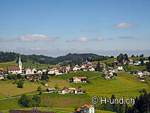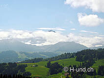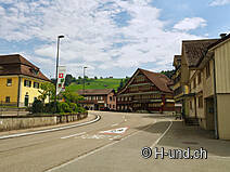 Today, according to the stage description, 24 km, 1050 meters of ascent and 1200 meters of descent lie ahead of us. This corresponds to a hiking time of about 7:40 h. Therefore we want to start early, but we can only have breakfast at 8:00 am. Afterwards we leave immediately and start with a first ascent. Immediately we find ourselves in the wonderful, hilly landscape of the Appenzell. The hiking trail is incredibly beautiful, but it rarely passes through villages and therefore hardly passes any wells. You should definitely carry enough water on you. But you will find a conspicuously large number of Robidogs. The paths lead us over many meadows, now and then also through cowsheds with mother cows and bulls. But these do not cause us any trouble. In the distance you can see the village Schwellbrunn after about two hours of walking. Here Switzerland presents itself as if from a picture book catalogue. On the way there are catering facilities, such as the Sitz mountain restaurant or restaurants or the village shop in St. Peterzell. In St. Peterzell we have already covered 16 kilometres and now we are going to make a last ascent to almost 1000 metres altitude difference. Shortly before Wattwil near Tüetlisberg or in Hofstatt you can leave the hiking trail and walk along the road down to the village. This is recommended for all those whose dogs cannot/do not want to walk up the stairs. Because the last meters along the rock face you have to walk down exactly on such a staircase. Our conclusion of today: absolute dream stage, but conditionally for dog and dog leader demanding. Since you run almost exclusively in the sun and there are hardly any water points, we would advise against this stage in the middle of summer. We stay overnight at a very reasonable price in the functional accommodation Motelina directly on the Way of St. James, where we do not pay any extra for the dog and unfortunately do not offer breakfast. We could complete the stage in about 7:20 minus lunchtime, but including drinking and dog bathing times. The distance corresponded approximately to our measurement, the altitude meters were again about 200 m less.