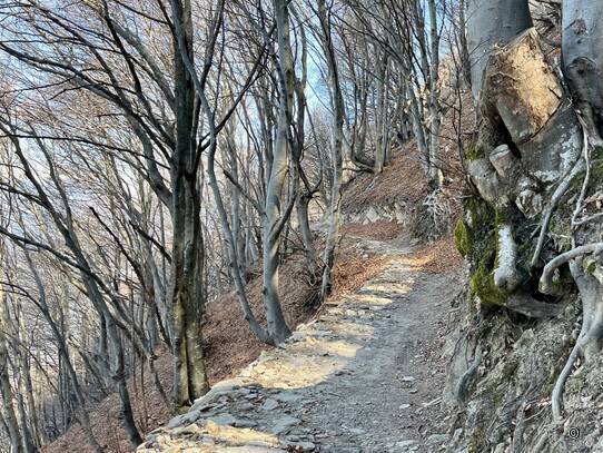 With a plan in mind, we set off: first we take the funicular from Lugano Albonago to Monte Bré and then we start the ascent to Monte Boglia. Unfortunately, the route we had planned was a little more exposed than we had expected and, as I'm not entirely free from vertigo, we changed our plans at short notice: instead of going up to the summit, we went around the flank. It's also a wonderful tour and you can find all the details here.