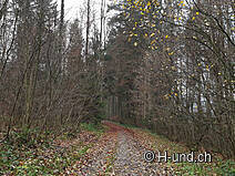 We walked from Oberhasli to Buchs, along the worn out "Bahnweg". The first track goes through the dense forest. This forest path is still very popular with horse lovers on this rather rainy day.