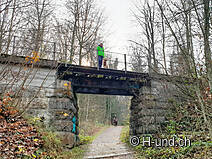 Later, where the tracks are already dismantled, there is an exciting path on an elevated meadow. Those who find it too wet or muddy can simply take the parallel hiking trail on a wider gravel path.