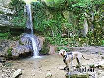 Sulla strada per la cascata ci sono diversi posti dove cane e padrone possono rinfrescarsi. Il bosco fa parte della riserva naturale, ma luoghi accoglienti invitano giovani e meno giovani a soggiornare e a fare grigliate. Esploriamo e ci meravigliamo del paesaggio e poi torniamo indietro nello stesso modo. La zona è molto popolare tra gli escursionisti e i ciclisti con il bel tempo.