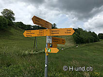 From Valais we travel by train to Thun and start there from Amsoldingen. From the church we walk past the parking lot and follow the road. Soon we find the first signpost marked Blumenstein. We are all very grateful for the refreshing cooling in the water pipes that accompany us from time to time. From Blumenstein to Wattenwil we walk along a beautiful forest road before we start the ascent after the Wattenwil church. Following the beautiful hiking trail no. 4 we arrive in Riggisberg. As the sky is getting darker, we decide to take a short ice cream and coffee break. After the heavy thunderstorm is over, we start the last part to Rüeggisberg.